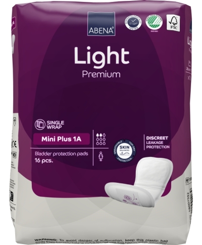 ABENA Light Mini Plus 1A sidemed on  anatoomiliselt kohandatud kehakujuga sidemed on mõeldud kerge ja mõõduka uriinipidamatuse jaoks – aktiivseteks päevadeks ja mugavuseks öösel.